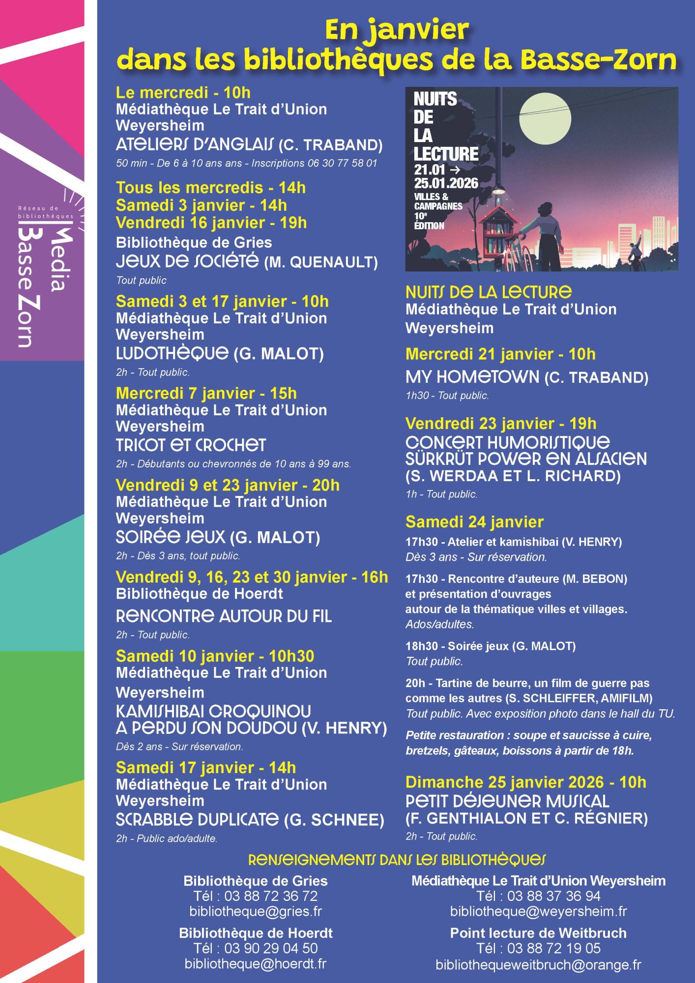 Voilà le programme des animations du mois de janvier dans les bibliothèques de la Basse Zorn !