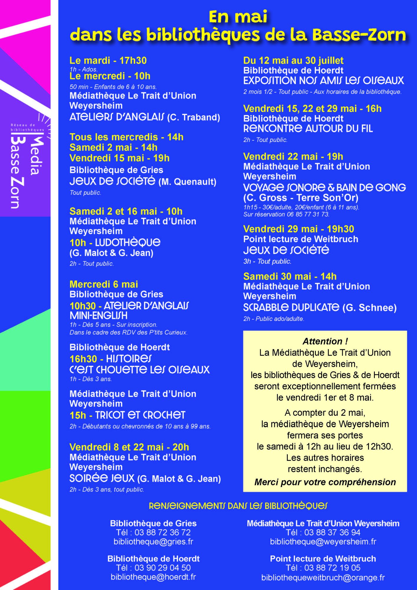 Voilà le programme des animations du mois de mai dans les bibliothèques de la Basse Zorn !