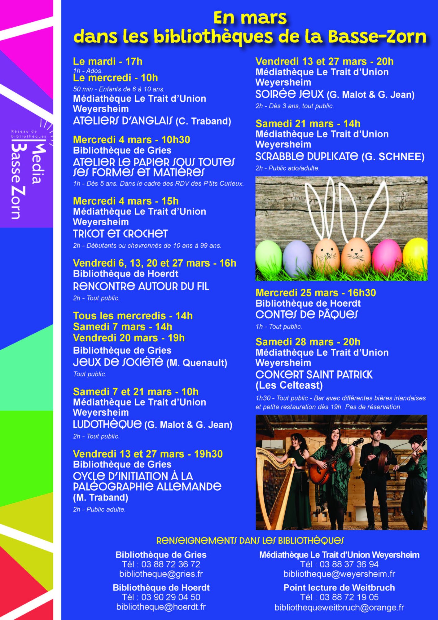 Voilà le programme des animations du mois de mars dans les bibliothèques de la Basse Zorn !