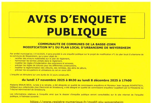 La prochaine collecte de sang aura lieu jeudi 6 novembre 2025 de 16h30 à 20h à l'Espace W de Weyersheim. Vous pouvez prendre RDV pour cette collecte via le lien https://dondesang.efs.sante.fr/trouver-une-collecte/137132/sang