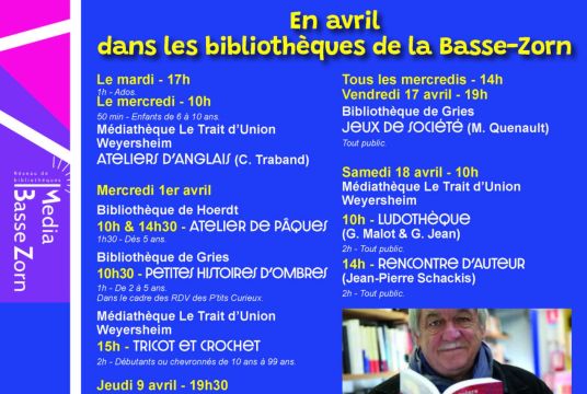 Voilà le programme des animations du mois d'avril dans les bibliothèques de la Basse Zorn !