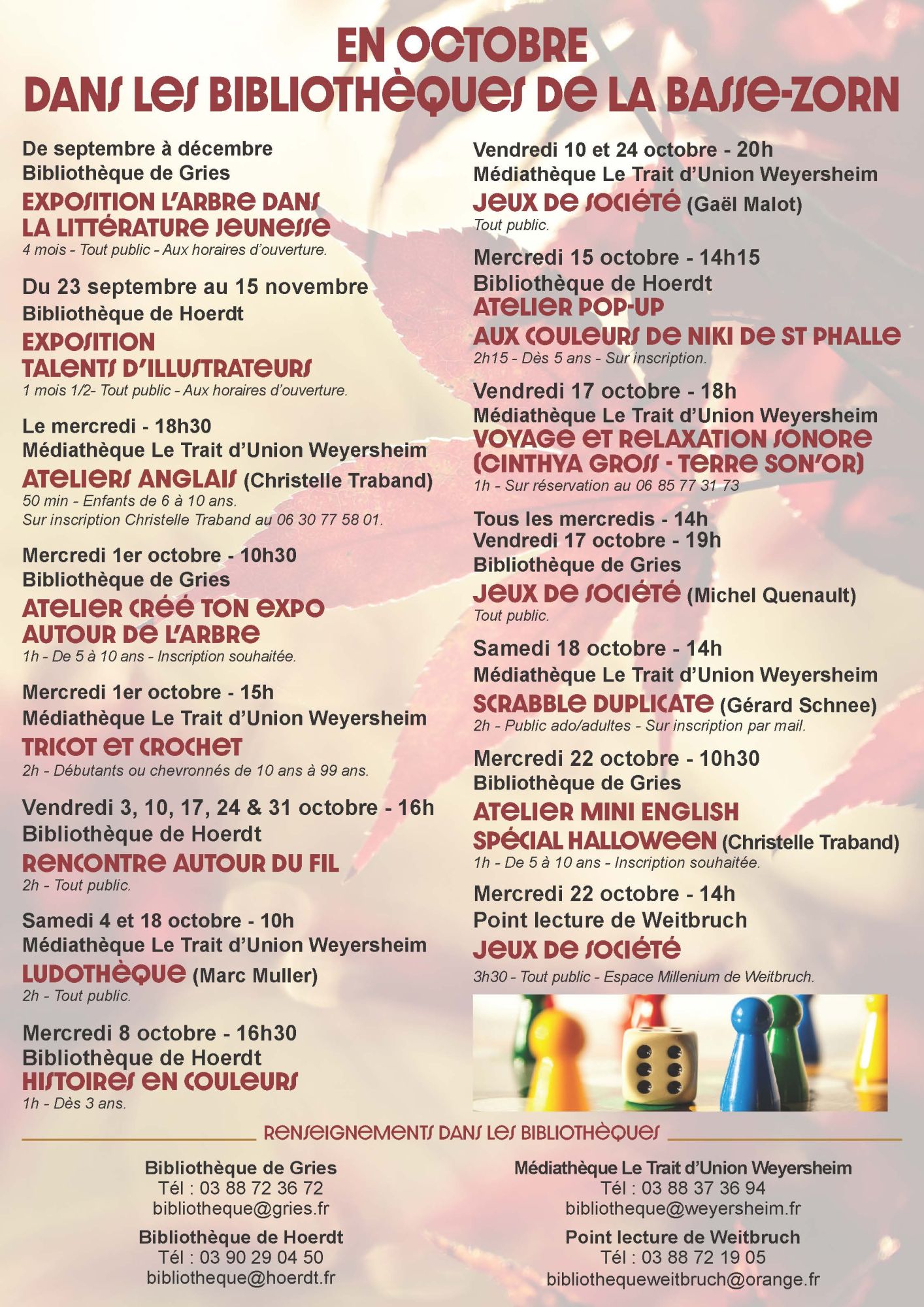 Voilà le programme des animations du mois d'octobre dans les bibliothèques de la Basse Zorn !
